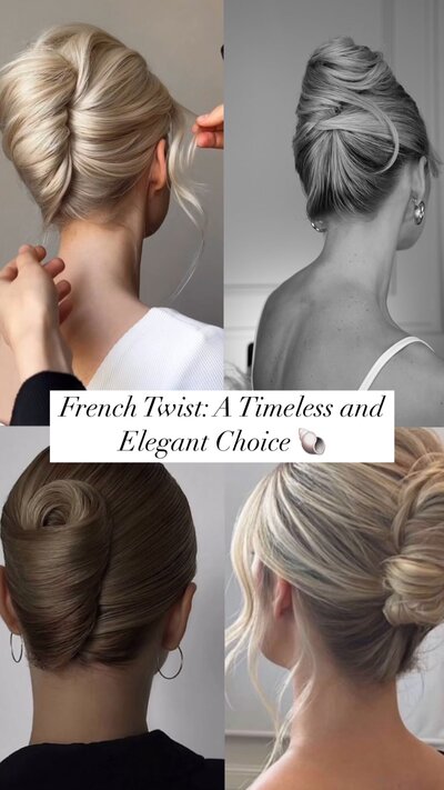 The French Twist is a must-have for brides seeking a sophisticated and polished look. This iconic style, popular among New York wedding hair stylists, is perfect for formal ceremonies, offering a sleek and refined appearance. Whether worn smooth or with a textured touch, the French Twist pairs beautifully with high-neck dresses and statement earrings.