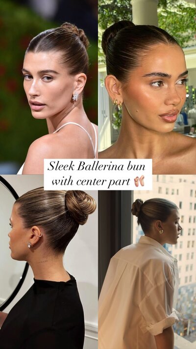 The sleek ballerina bun with a center part is one of the top bridal hair trends for 2025, offering a sophisticated and polished look that exudes effortless elegance. This timeless hairstyle is perfect for brides who want a clean, modern aesthetic with a touch of classic refinement.