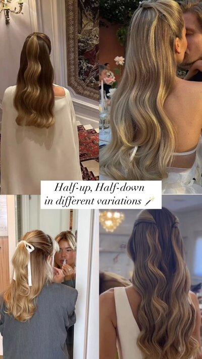 One of the most popular styles for NYC brides in 2025 is the classic half-up, half-down bridal hair. This timeless look offers the perfect balance between keeping your hair down and maintaining a structured style. Soft curls or loose waves add romance and elegance, while hairpins, pearl clips, or delicate accessories elevate the style.