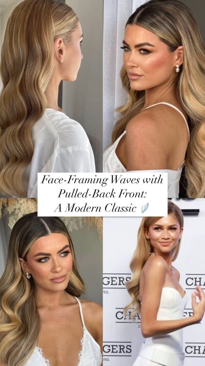 One of the most versatile bridal hairstyles trending in 2025 is the combination of face-framing waves with softly pulled-back front sections. This look offers a perfect blend of structure and flow, allowing brides to enjoy the elegance of pinned-back hair while showcasing beautiful, cascading curls or sleek waves.
