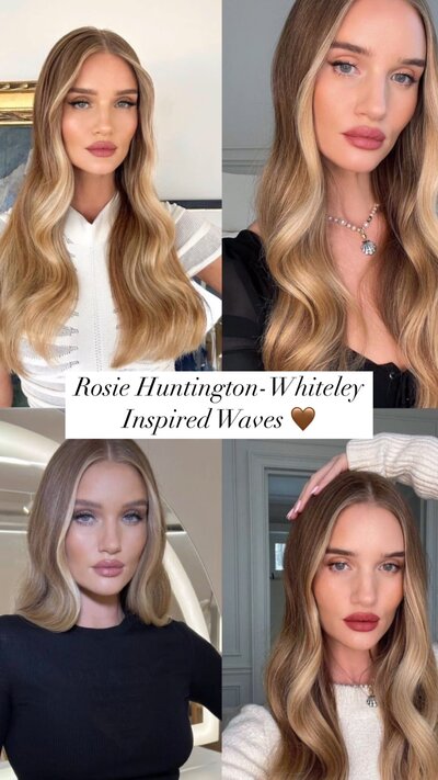 For brides who adore classic Hollywood glamour with a modern touch, the Rosie Huntington-Whiteley inspired waves are the epitome of sophistication. This hairstyle features perfectly polished waves, a sleek center part, and a soft, voluminous finish that enhances the bride’s natural beauty.