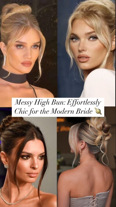 The messy high bun is a trend that’s here to stay in 2025. With soft, face-framing tendrils and a relaxed texture, this hairstyle is perfect for bohemian brides or those planning a rustic wedding. It’s an effortlessly chic look that balances modern charm with a hint of romance.