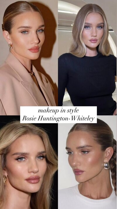 For brides who adore soft glam with a touch of sophistication, Rosie Huntington-Whiteley’s signature look is a perfect inspiration. Peachy nude tones, perfectly sculpted cheeks, and polished brows create a beautifully structured yet soft finish. This trend is all about achieving a refined, glowing complexion that radiates elegance.